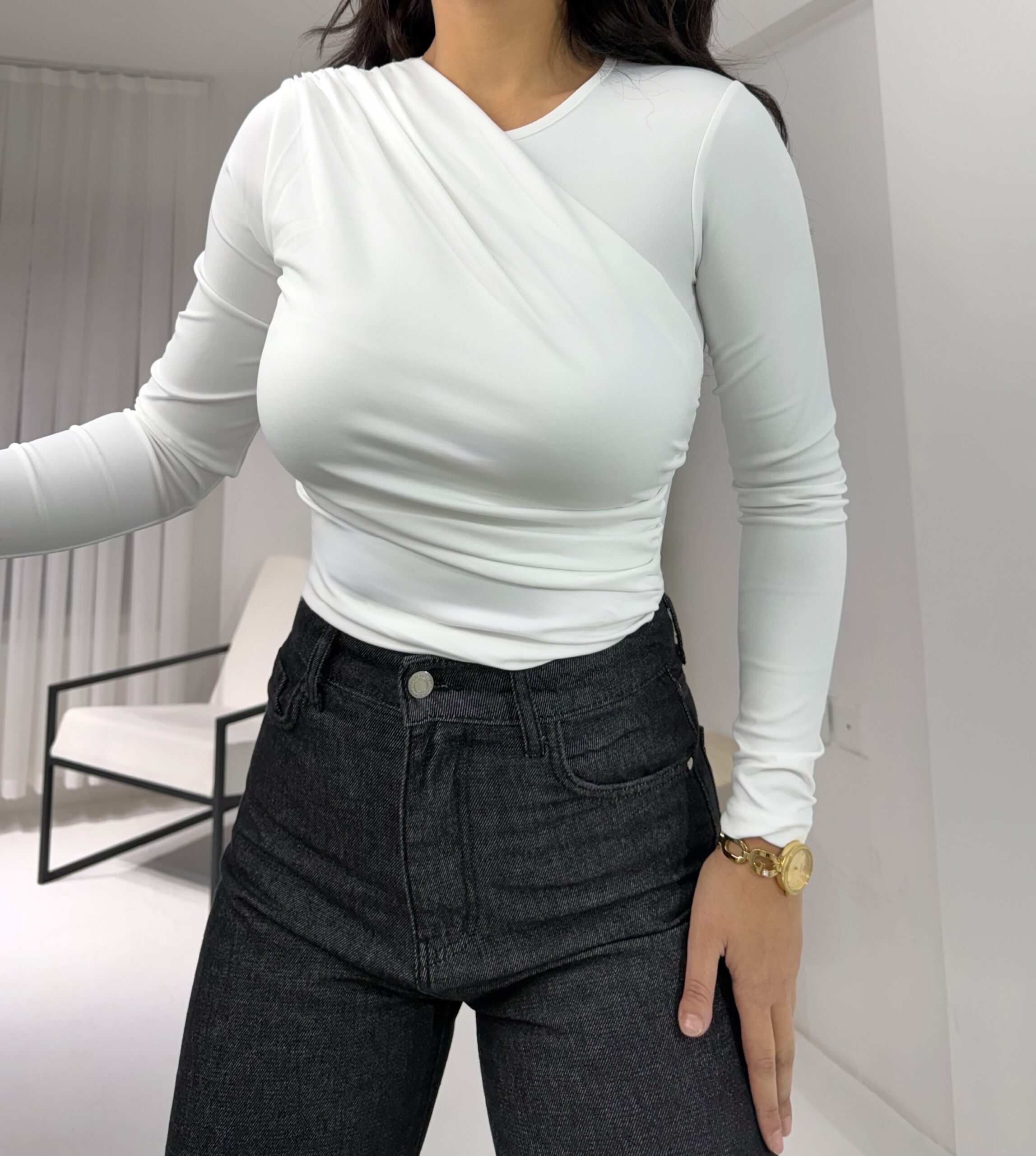 Beyaz Büzgülü Bluz