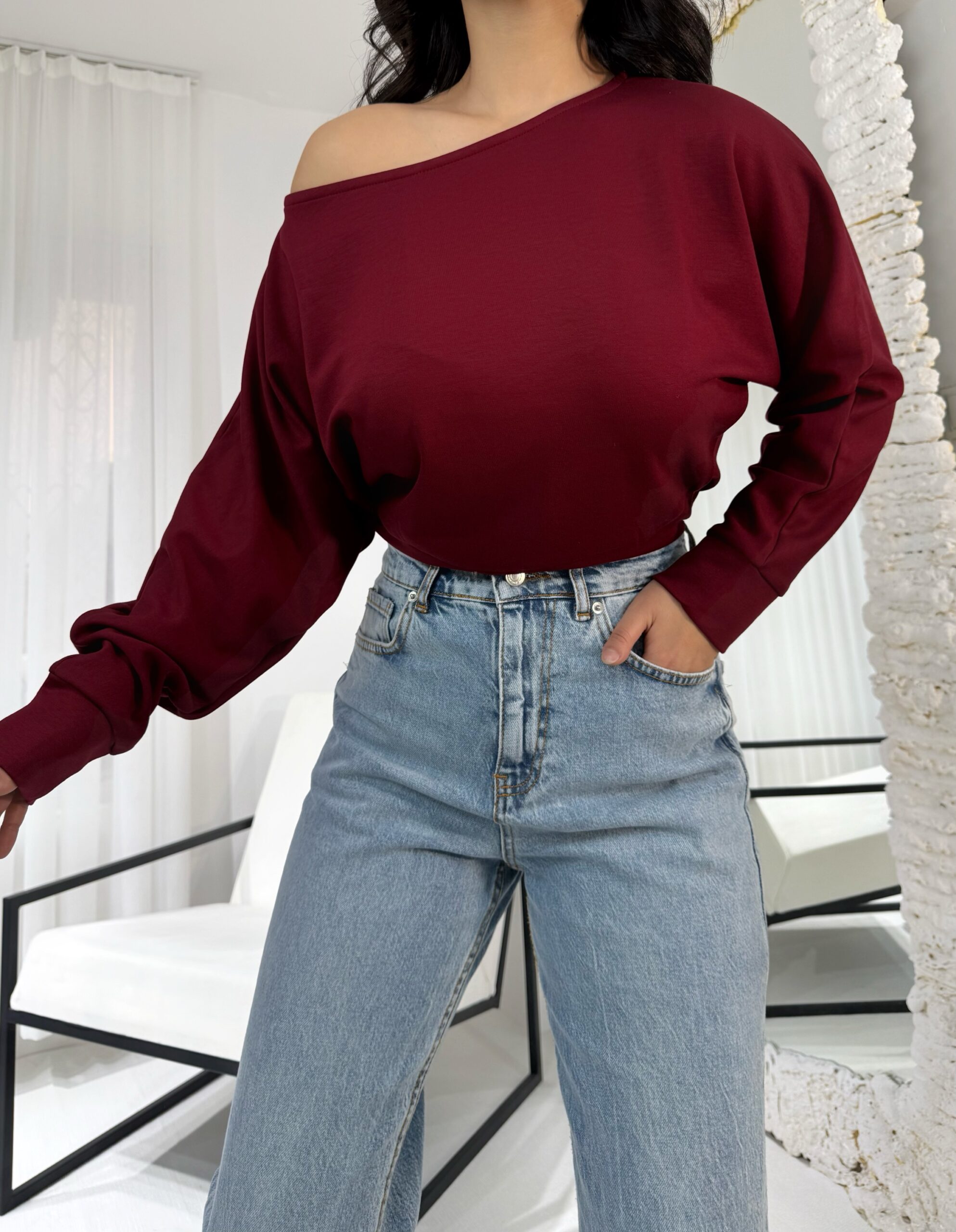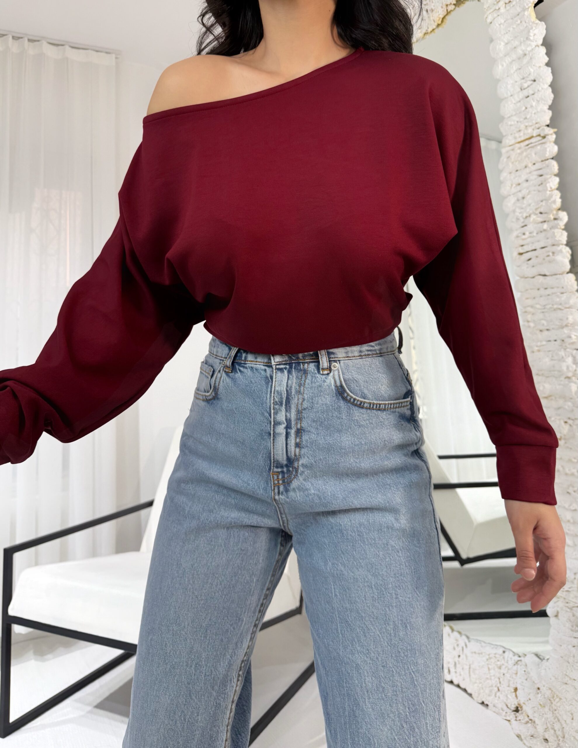 Bordo Kayık Bluz
