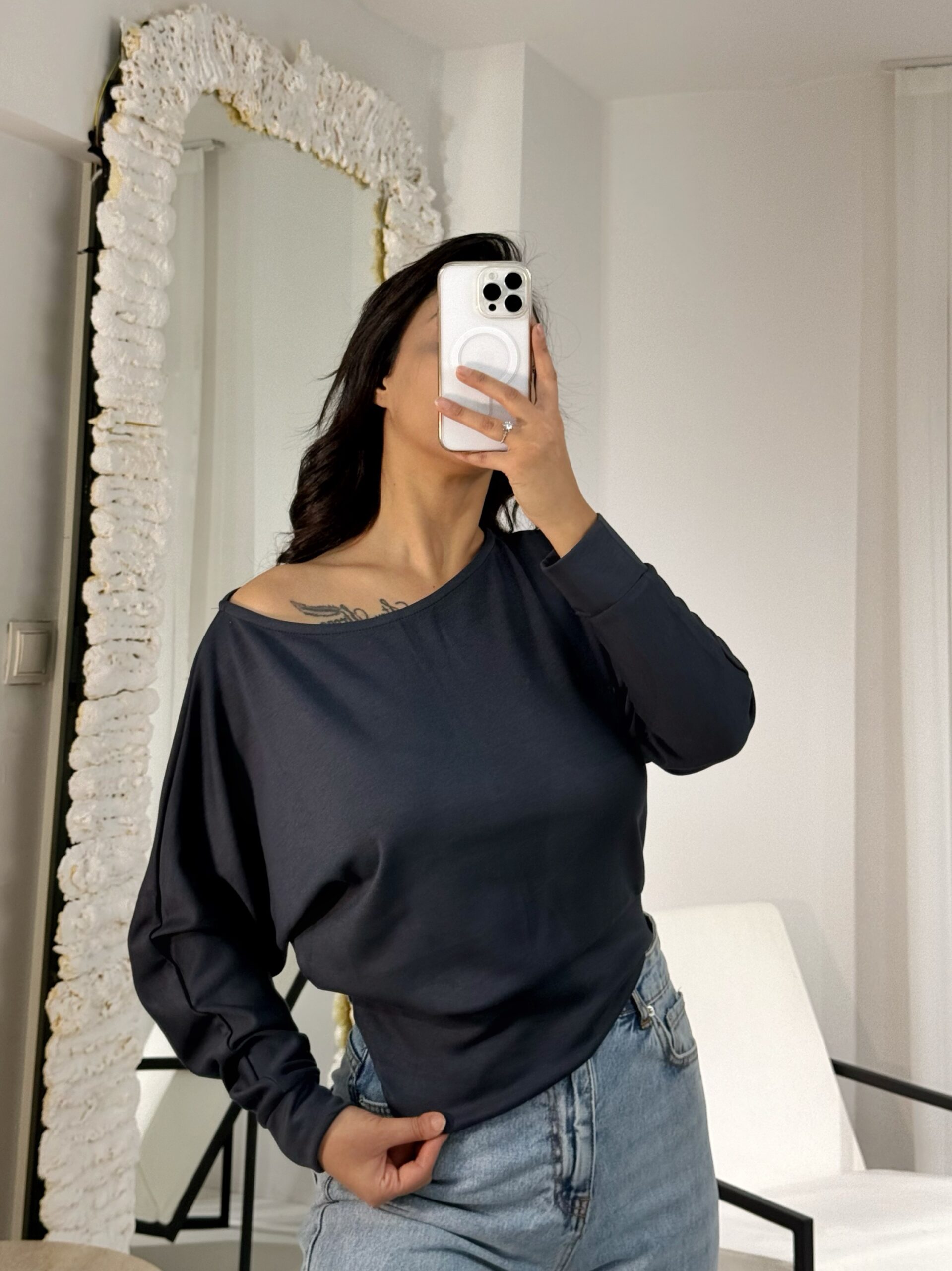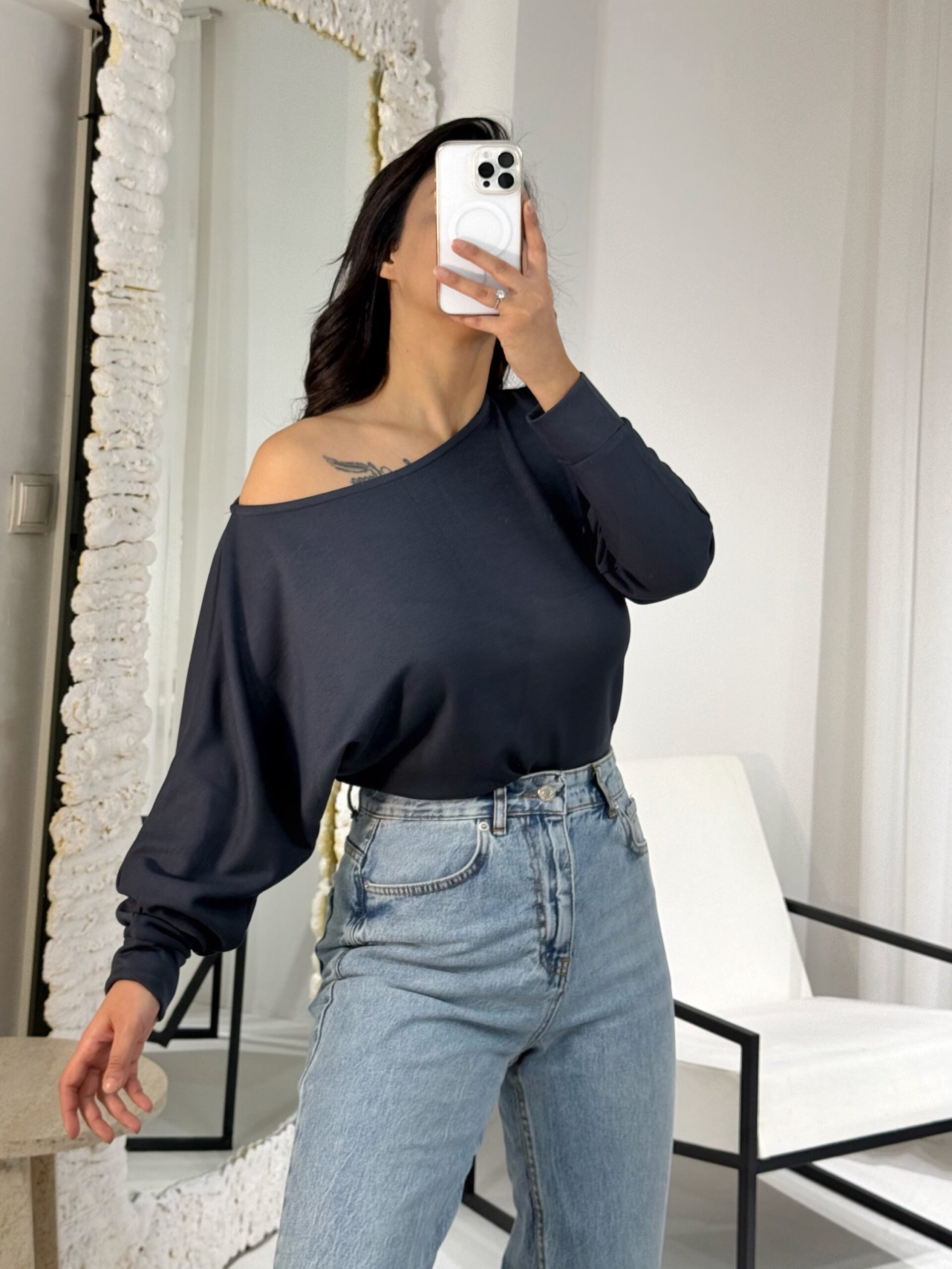 Gri Kayık Bluz