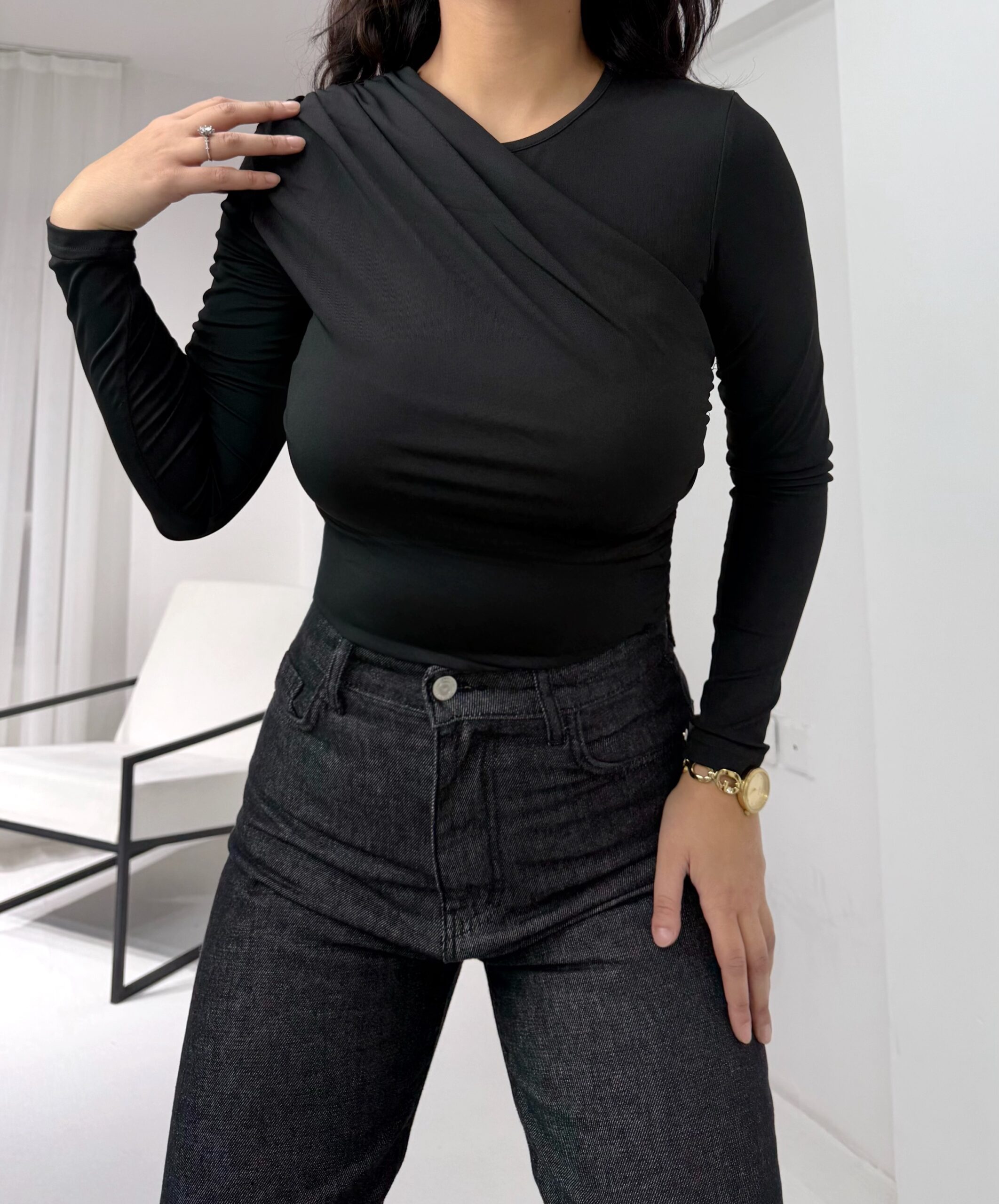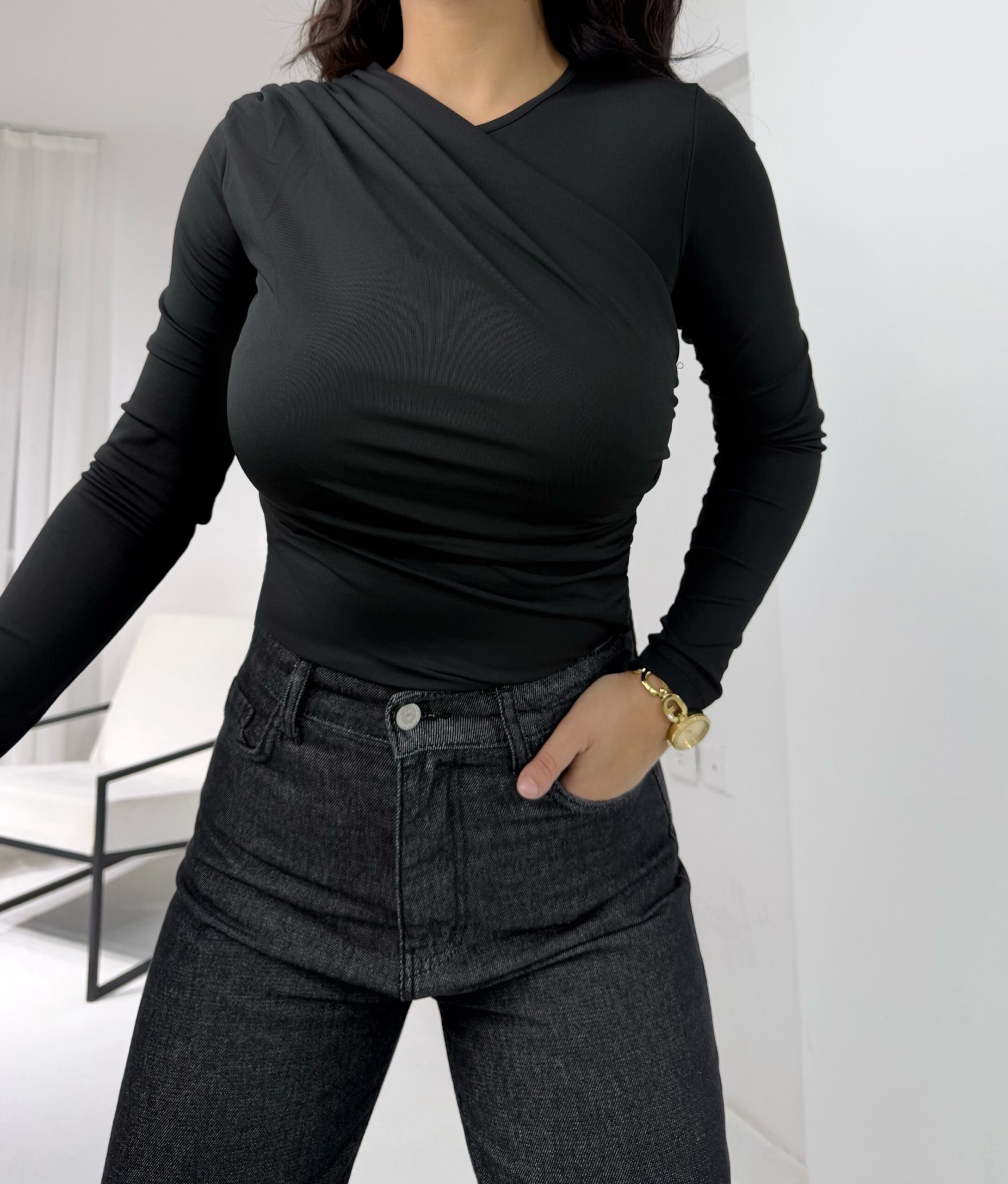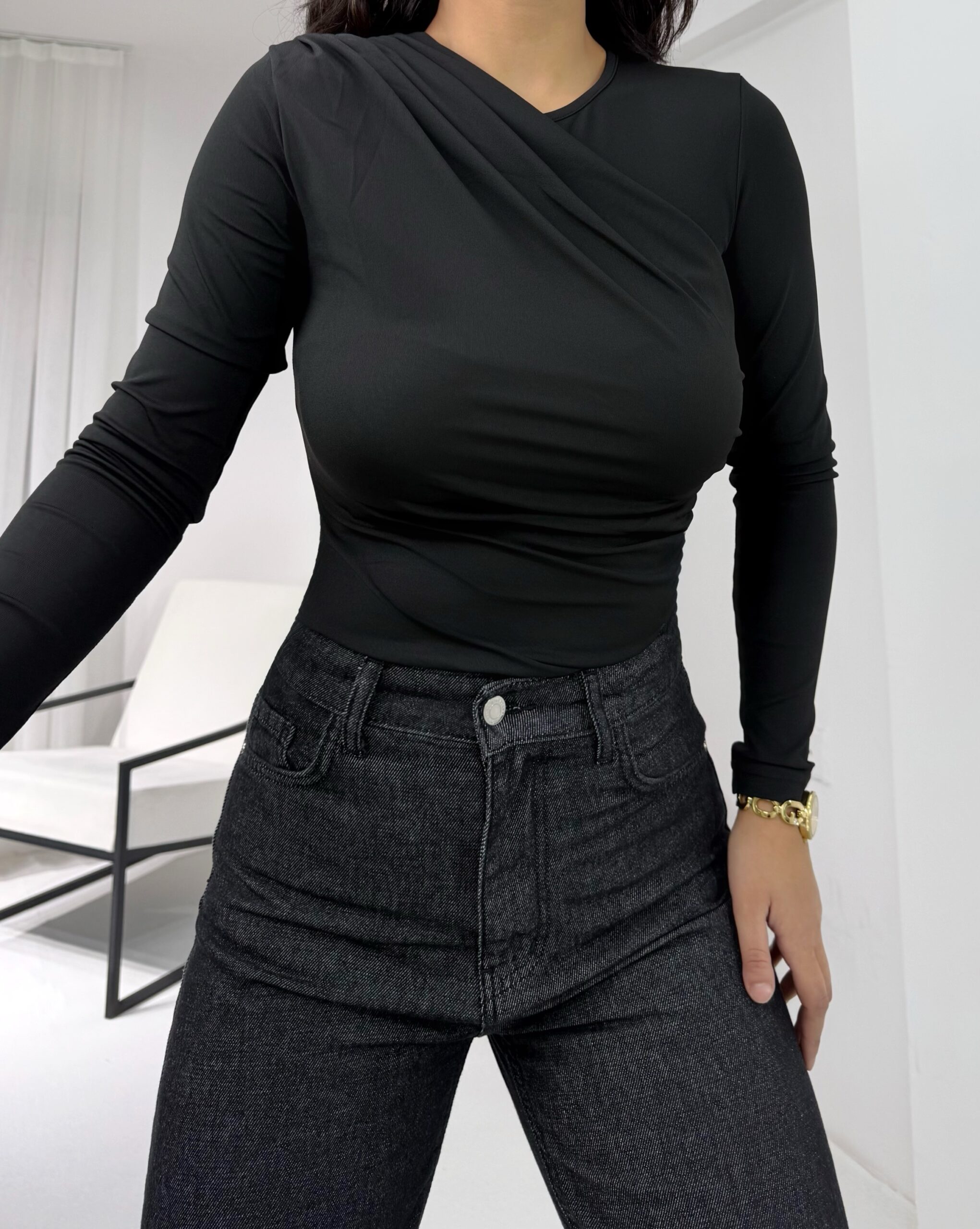 Siyah Büzgülü Bluz