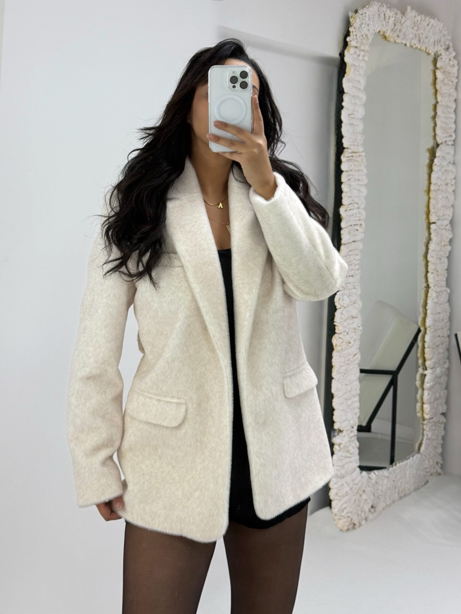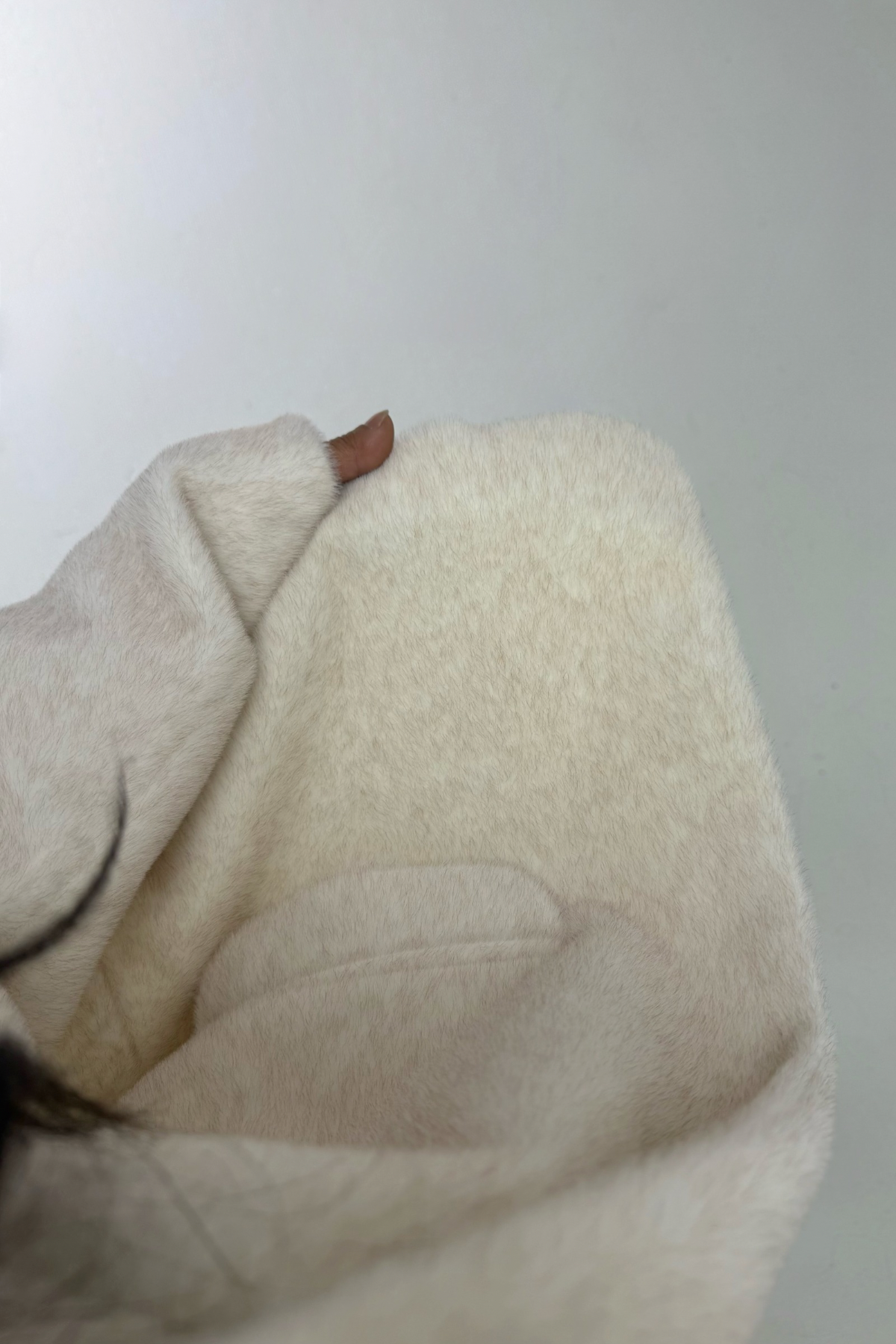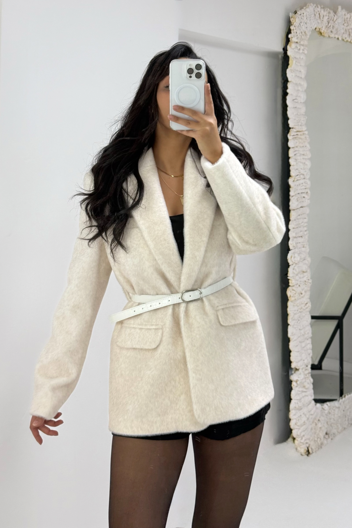 Krem Kırçıllı Kemerli Astarlı Ceket