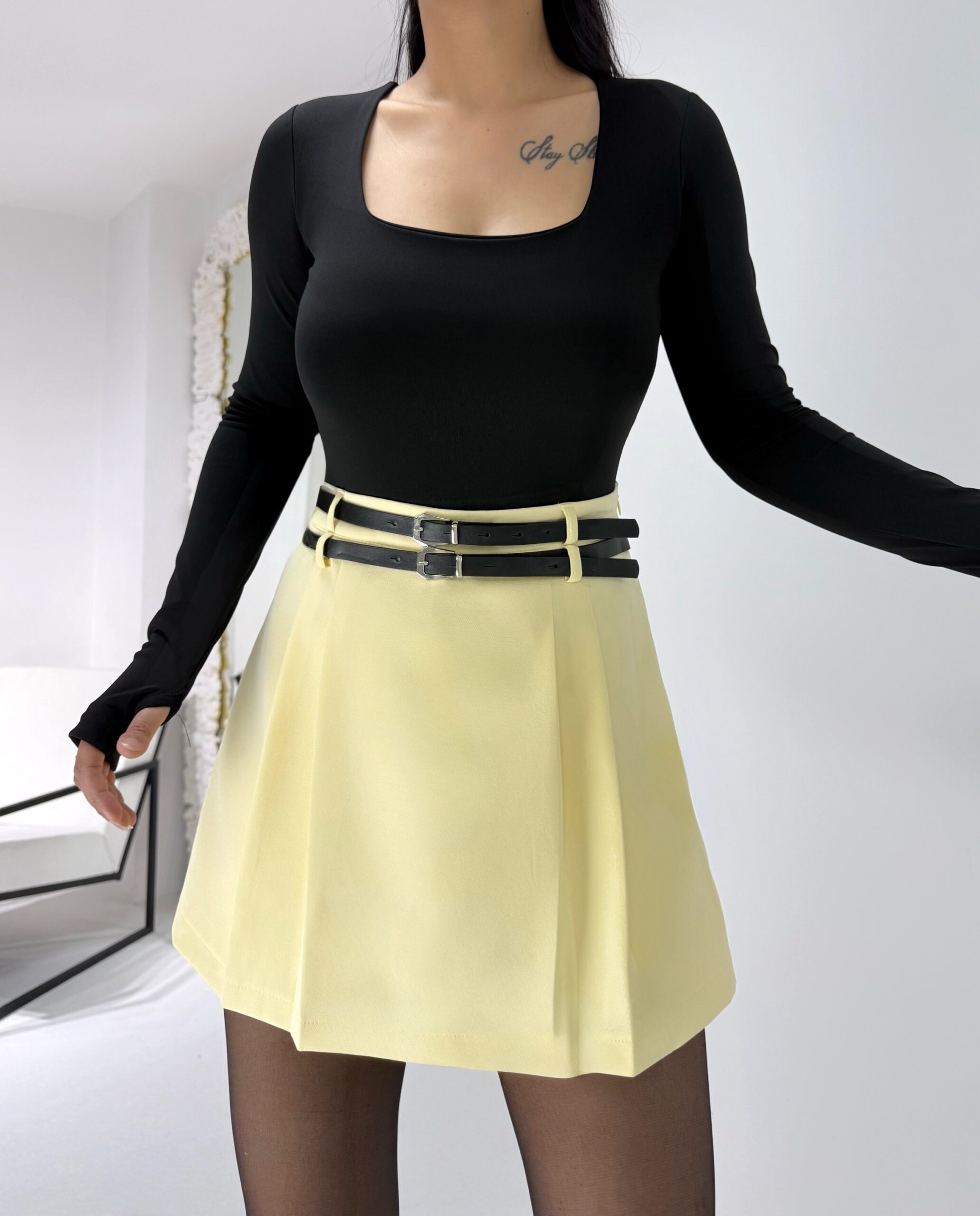 Sarı Kemerli Şort Etek
