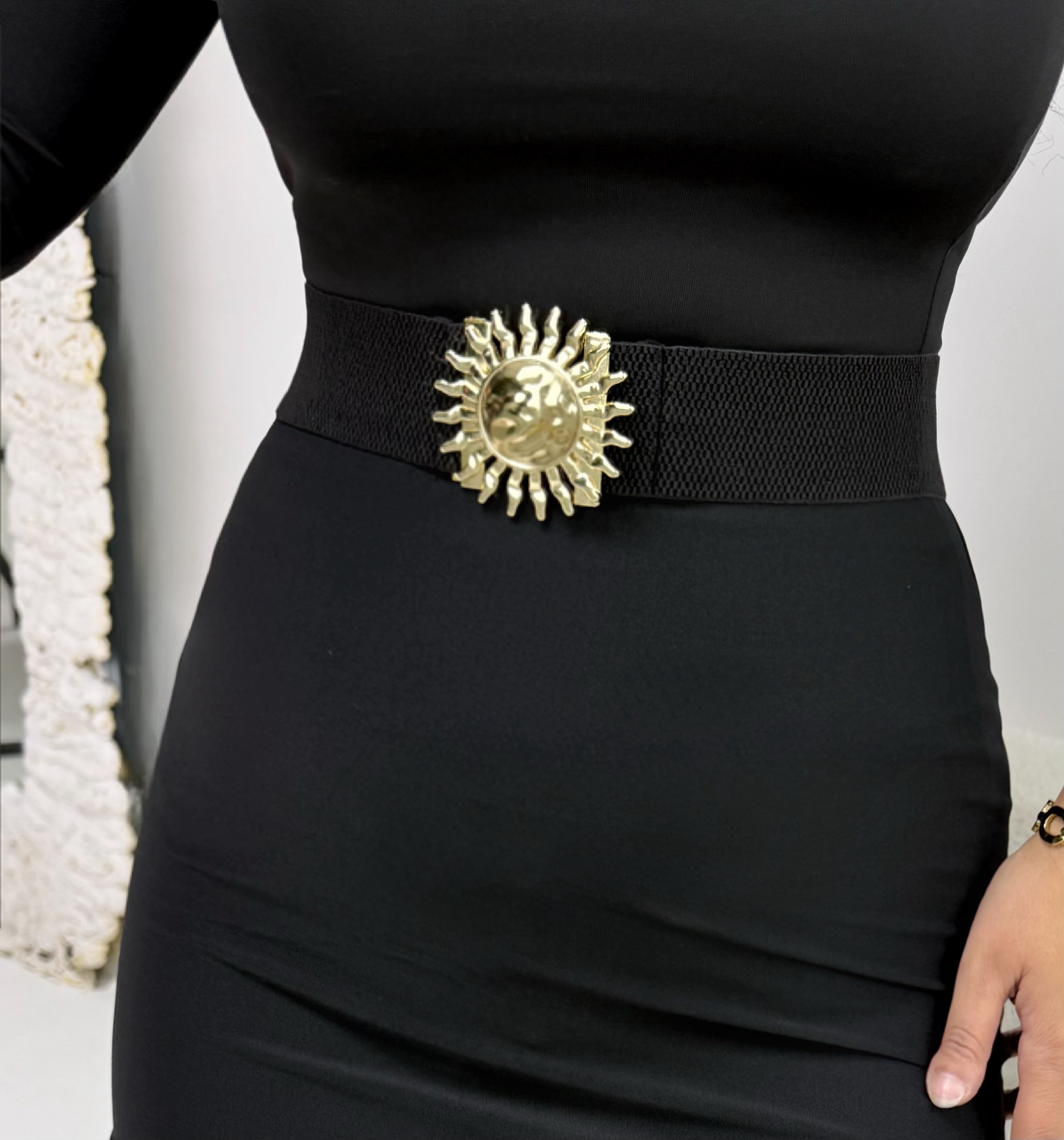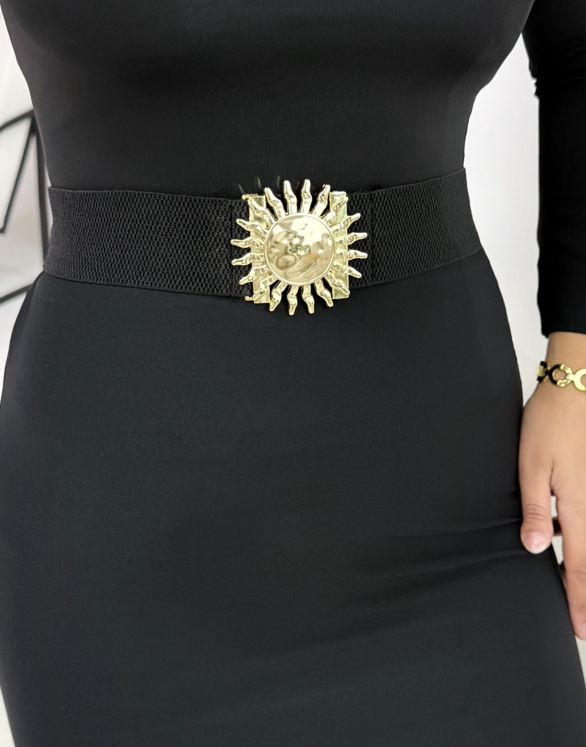 Siyah Lastikli Gold Güneş Toka Kemer