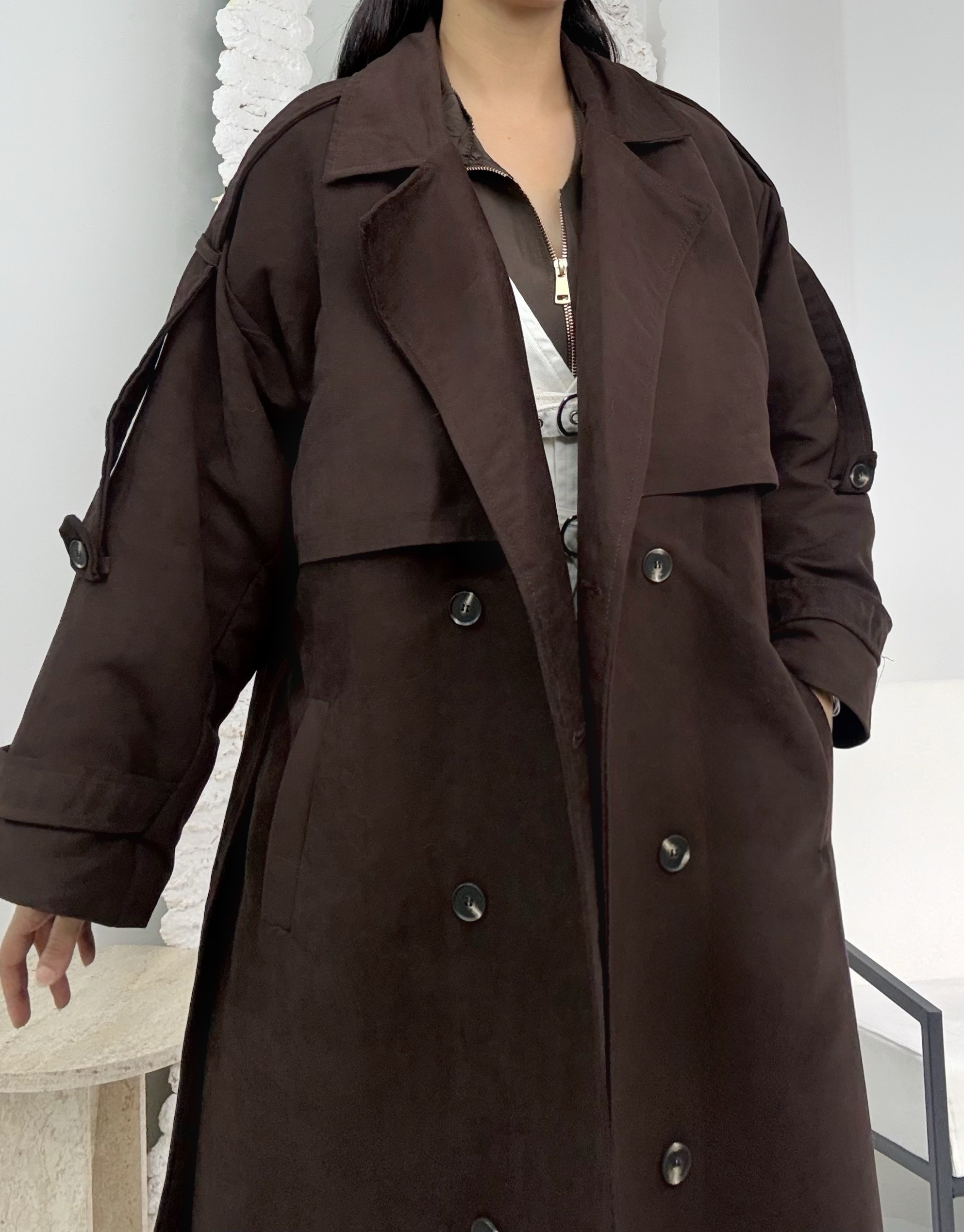 Acı Kahve Süet Astarlı Kaban