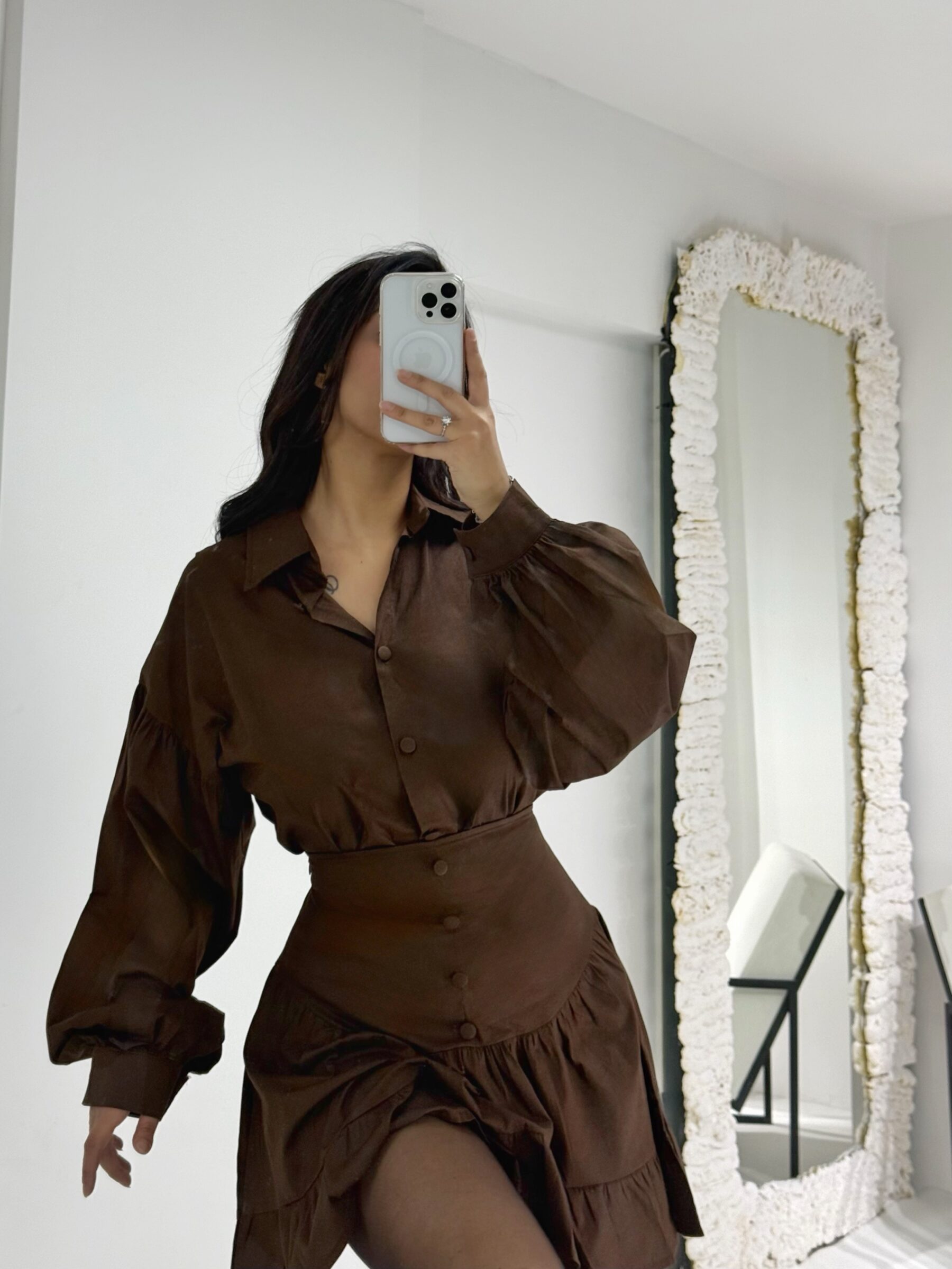 Mavi Desenli Gömlek Etek İkili Takım