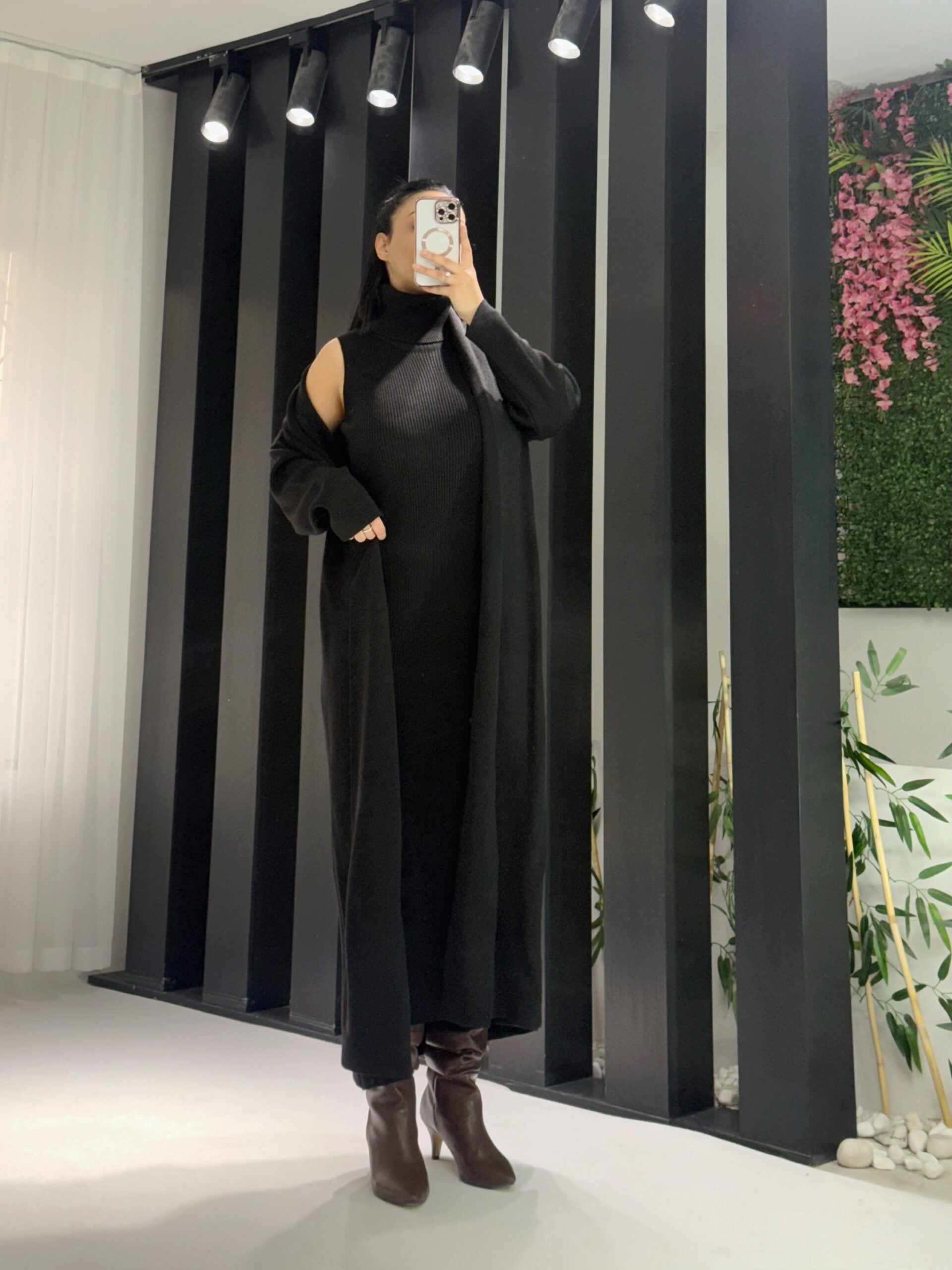 Siyah Hırka Elbise İkili Takım