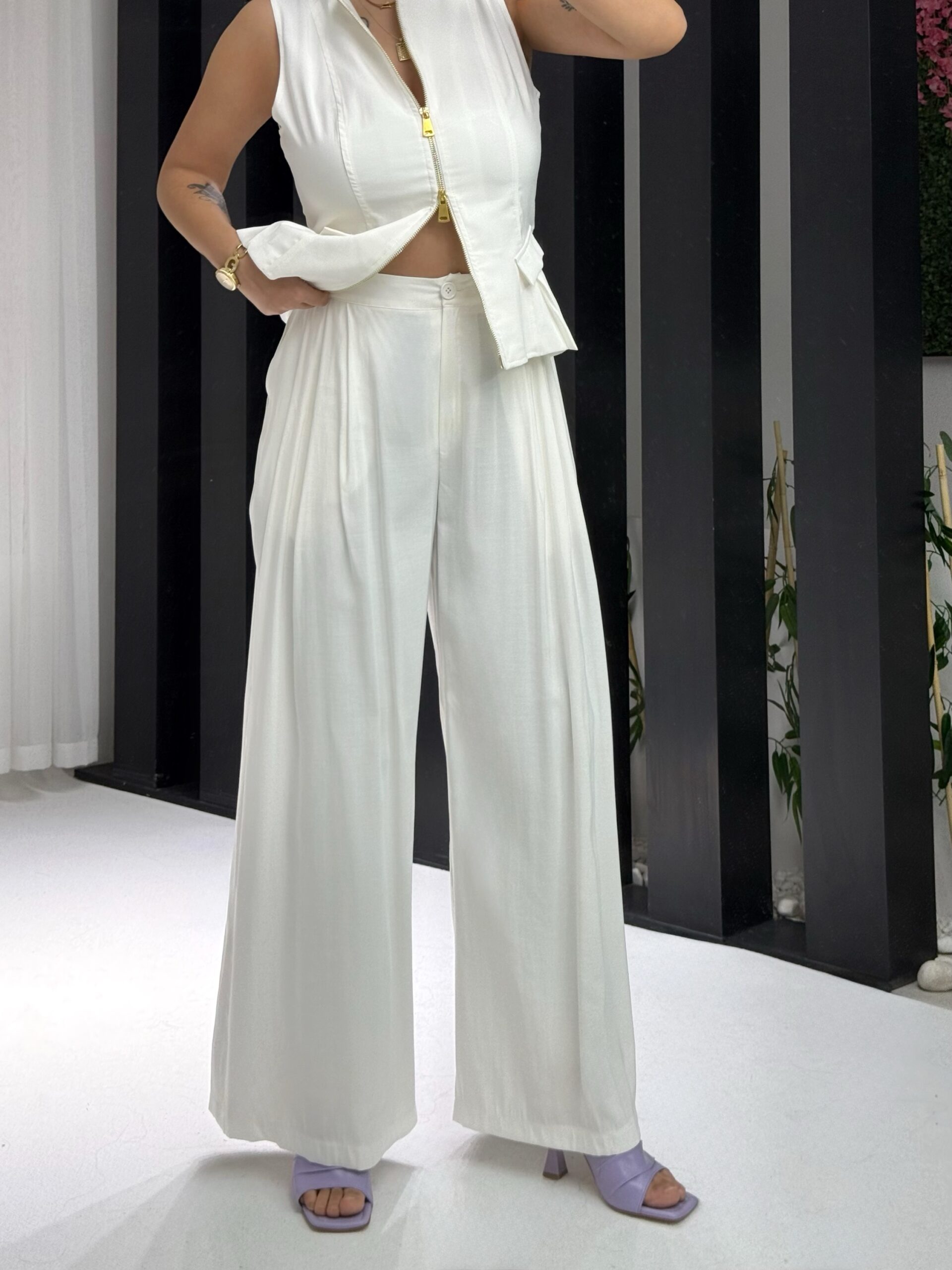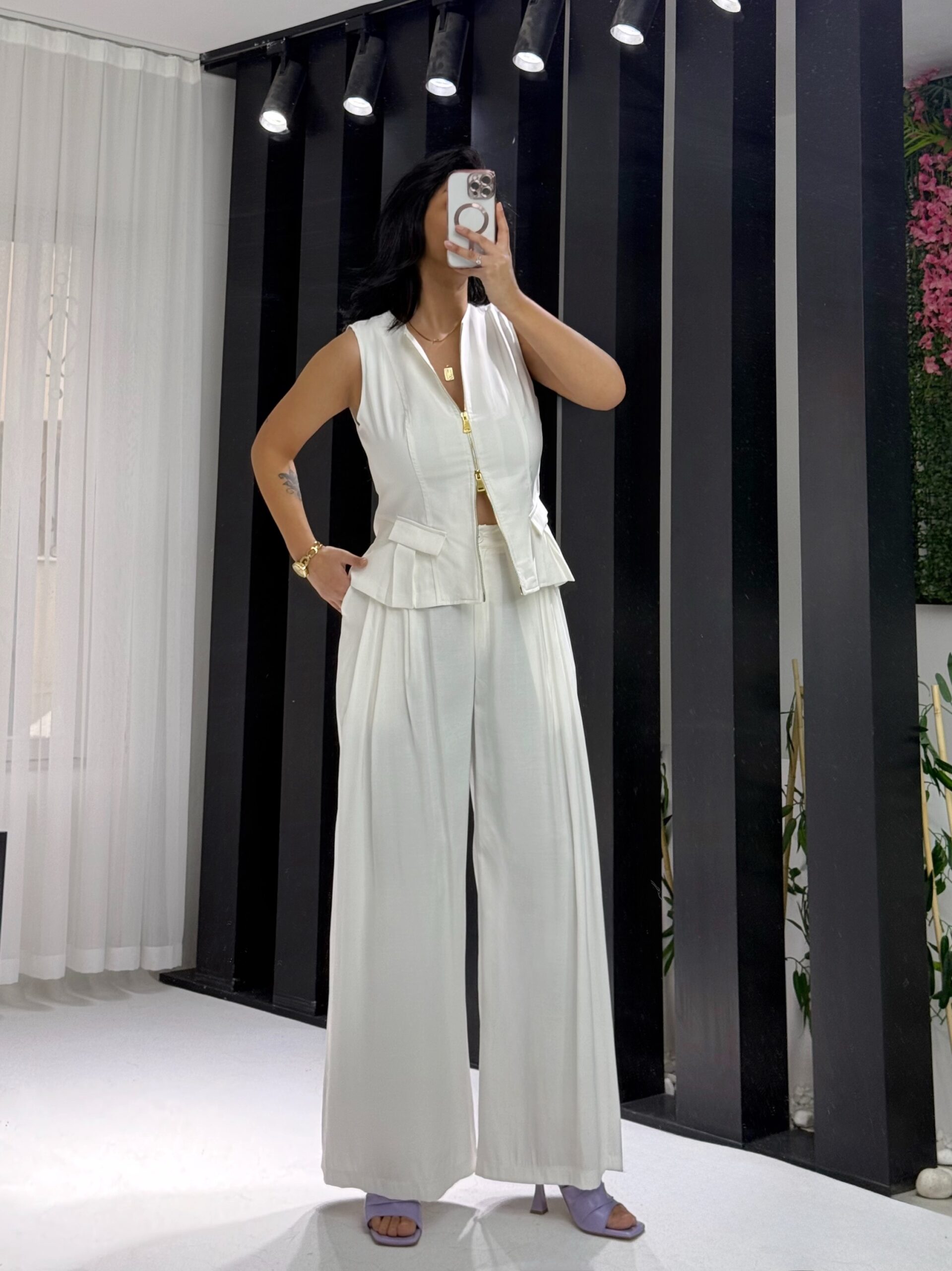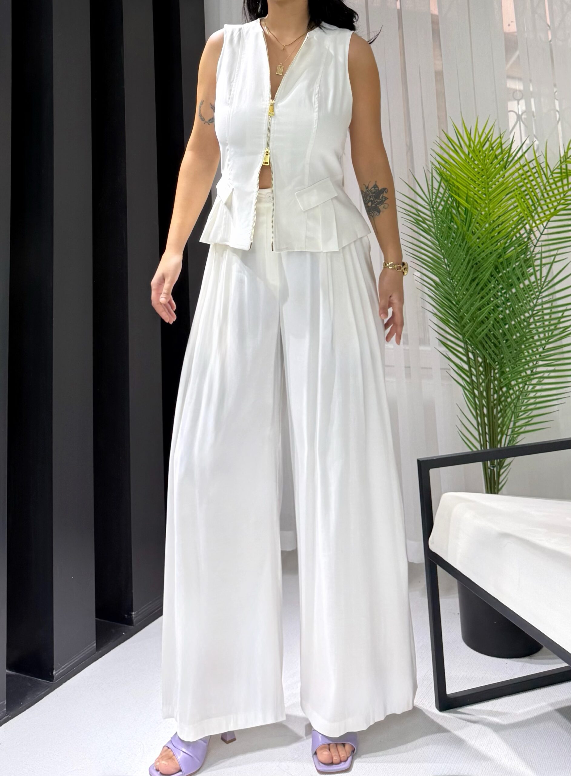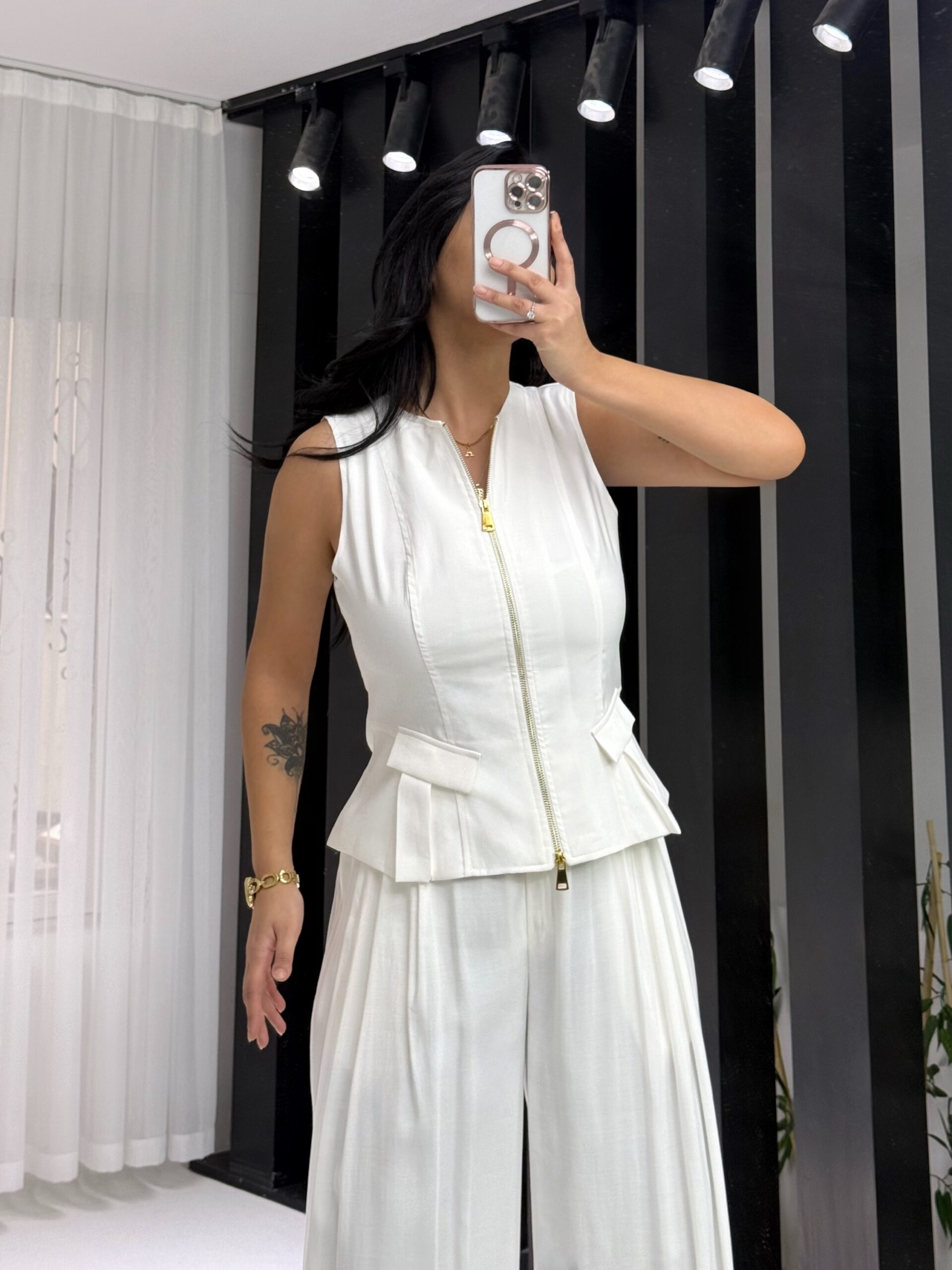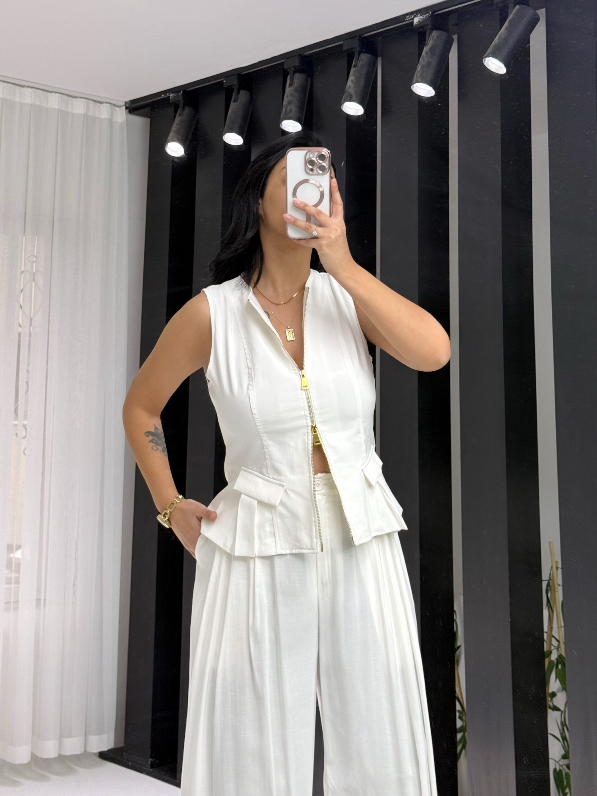 Beyaz Tensel Çift Fermuarlı Yelek