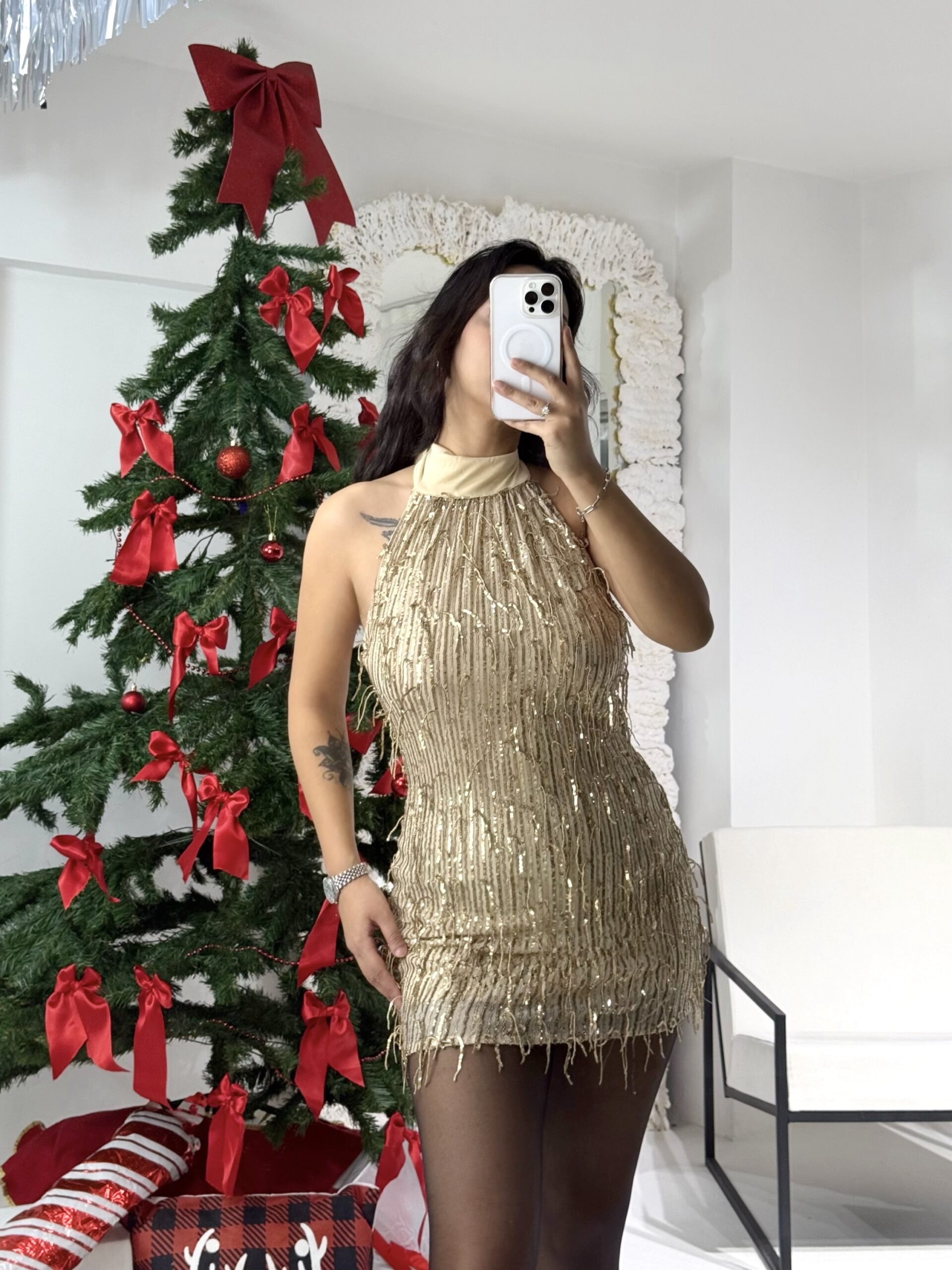 Gold Sırt Dekolteli Mini Elbise